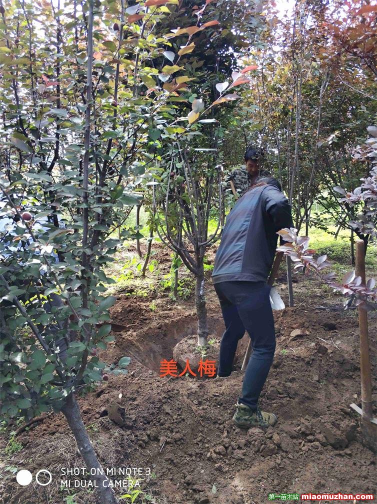 帥意苗圃種植中心位于美麗的泰山腳下交通便利,有600畝美人梅無病蟲害樹干端正, 美人梅(學名:Prunus × blireana cv. Meiren):落葉小喬木或灌木,法國引進。由重瓣粉型梅花與紅葉李雜交而成。落葉小喬木。葉片卵圓形,長5~9厘米,葉柄長1-1.5厘米,葉緣有細鋸齒,葉被生有短柔毛,花色淺紫,重瓣花,先葉開放,萼筒寬鐘狀,萼片5枚,近圓形至扁圓,花瓣15-17枚,小瓣5-6梅,花梗1.5厘米,雄蕊多數,自然花期自3月...朵花開以后,逐次自上而下陸續開放至4月中旬。紫紅色。花粉紅色,繁密,先花后葉。花期春季。喜陽光充足、通風良好、開闊的環境。要求土層深厚、排水良好、富含有機質的土壤。嫁接、壓條、扦插繁殖。優良的園林觀賞、環境綠化的樹種。