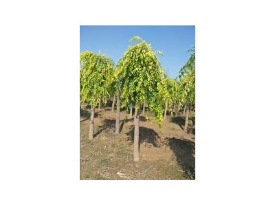 金葉垂榆是落葉喬木類,白榆變種而來。單葉互生,橢圓狀窄卵形或橢圓狀披針形,長2~9厘米,基部偏斜,葉緣具單鋸齒。葉片金黃鮮亮,有自然光澤,彰顯黃金的高貴。枝條柔軟.細長自然、生長快、自然造型好、樹冠豐滿。