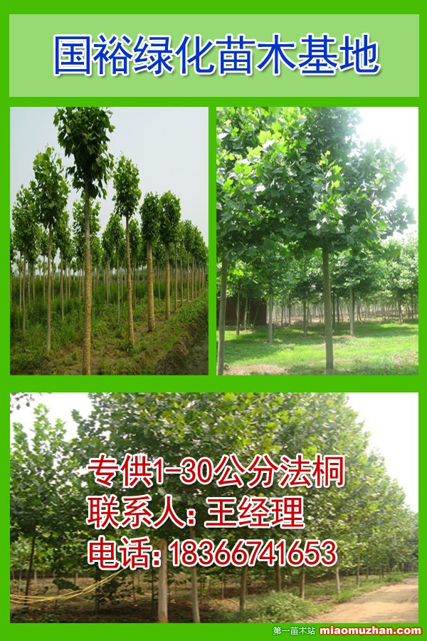 山東濟寧國裕苗木種植基地主營:法國梧桐、造型法桐、法桐小苗、一年冒、二年冒、全冠法桐、一公分、二公分、八公分、十公分、十五公分等規格的法桐小苗。另有國槐、白蠟、垂柳、欒樹、大葉女貞、紫葉李等各種規格的大小苗木,產品遠銷江蘇、上海、北京、天津、河北、安徽等十幾個省市。