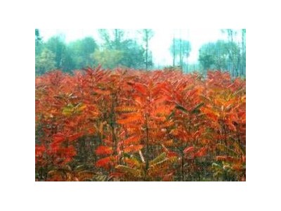 火炬樹,科名漆樹科,為漆樹科鹽膚木屬落葉小喬木。奇數羽狀復葉互生,長圓形至披針形。直立圓錐花序頂生,果穗鮮紅色。果扁球形,有紅色刺毛,緊密聚生成火炬狀。果實9月成熟后經久不落,而且秋后樹葉會變紅,十分壯觀。原產歐美,常在開闊的沙土或礫質土上生長。