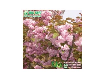 關(guān)山櫻為日本晚櫻的一個(gè)品種,花期3月底或4月初,花葉同開。與怨厴秸較為相似,花濃紅色,開花繁密。花徑6厘米左右,重瓣,花瓣33 — 35 枚,2枚雌蕊葉化,因此不能結(jié)實(shí),花梗粗且長(zhǎng),嫩葉茶褐色。小枝多而向上彎。秋葉橙黃可比銀杏,非常美麗。孤植、群植均可,也可作為行道樹栽植。