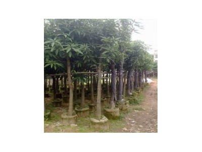芒果樹,漆樹科,別稱檬果檨仔、庵羅果 ,原產地為印度、馬來西亞、緬甸 ,是常綠喬木。 簡介: 科別:漆樹科 學名:Mangifera indica 英名:Mango Tree 別稱:檬果、檨仔、庵羅果 原產地:印度、馬來西亞、緬甸 特性: 1. 外型:常綠喬木,樹冠稍呈卵形或球形,樹干直,樹皮灰白色或灰褐色,樹枝強大,小枝直立。 2. 葉:葉互生,全緣,披針形,革質,稍尖頭,長約15--30公分,寬約9公分,中肋粗大在葉背隆起,側脈羽狀,葉柄長約3.5-4.5公分。新葉為紫紅色,舊葉為綠色。 3. 花:花頂生,圓錐花序,花序直立,生有短毛。花小形,無梗,淡黃色,有芳香,萼片五裂,呈覆瓦狀排列。 4. 果實:芒果果實呈腎臟形,主要品種有土芒果與外來的芒果,未成熟前土芒果的果皮呈綠色,外來種呈暗紫色;土芒果成熟時果皮顏色不變,外來種則變成橘黃色或紅色。芒果果肉多汁,味道香甜,土芒果種子大、纖維多,外來種不帶纖維。常見果實品種有青芒果,即雞蛋芒;黃芒果,即臺龍芒;長芒果,即象牙芒;腰芒;紅皮芒。廣東芒果樹-云南芒果樹-四川芒果樹-廣西芒果樹-貴州芒果樹-海南