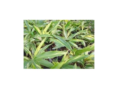 識別特征:常綠草本觀葉植物。高1—2米,盆栽高度多在l米以下。它根莖橫 生,肉質。葉革質,有短柄,短圓狀披針形;長約30—80厘米、寬15—20 厘米;葉面深綠色,并有金黃色的縱斑紋、斑塊,富有光澤。圓錐花序下垂,苞片白色,邊緣黃色,頂端及基部粉紅色,花彎近鐘形,花冠白色,花期夏季。