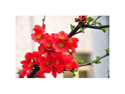 二、形態特征:落葉灌木,株高2-3米枝外展,無毛,具直制。單葉互生;托葉腎形或半月形;葉片草質,卵形至橢圓形、長橢圓形,葉端尖,基部楔形,邊緣有尖銳鋸齒。花先葉開放,3-5朵簇生枝上,花枝短粗;萼筒鐘狀,頂端5裂;花瓣5,淡紅色或白色;雄蕊多數;花柱5,基部合生,子房下位,5室。梨果卵形,木質,外皮光滑,黃色或黃綠色,具芳香。種子扁平,長三角形棕褐色。花期3-4月,果期5-10月。