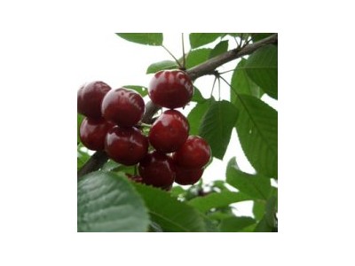 【早大果櫻桃苗】烏克蘭品種,2002年由山東煙臺引入銅川。果實圓形至寬心臟形,大果型,平均單果重10克,**大果重達12克以上。果皮紫紅色,富有光澤。果肉紅色,肉質較硬,韌性強,裂果少,果汁多,酸甜可口。粘核,可食率為91.2%。銅川5月上旬成熟,比紅燈早熟5-7天,耐貯運,品質佳(自花不實)。