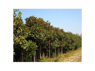 冠圓錐形,葉厚革質(zhì),橢圓形或倒卵狀,表面深綠色、有光澤,背面密被銹色絨毛。表面有光澤,邊緣微反卷,葉長(zhǎng)10—20