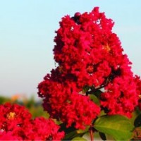 千屈菜科紫薇屬落葉喬木,美國大紅紫薇新品種,紫薇中花色**鮮紅的品種之一,花鮮紅如國旗,花簇可達24英寸,花量大,花色艷麗,片植的色塊開花時一片火海。