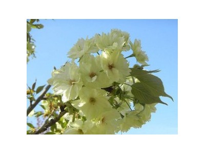 郁金櫻為綠櫻的一種,屬薔薇科,有單瓣和重瓣之分,以重瓣的居多。花淺黃綠色,瓣約15枚,質稍硬,***外方的花瓣背部帶淡紅色,常有旗瓣。萼長橢圓狀披針形,全緣,花瓣7~18枚,凹頭,淡黃綠色至淡紫色,內側花柄有柄。