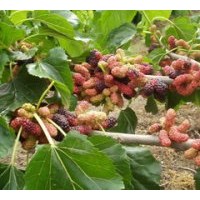 果桑樹當(dāng)年栽種第二年就可掛果,畝栽500-660株,第3年即達豐產(chǎn),可采摘1500-2500公斤以上,樹齡20年以上,樹高4米左右。掛果期可達一個月,成熟期可達一到二周,不同品種采摘期有前后,搭配種植采摘期更長。果桑的成熟產(chǎn)果期在4月底到6月初,全國不同緯度氣候有差別,大棚栽種果桑可以提前至元月上市,經(jīng)濟效益高于其他作物數(shù)倍。由于桑果屬于漿果類,不便于長途運輸,當(dāng)?shù)毓r(nóng)完全可以壟斷當(dāng)?shù)氐乃袌觯u得好的價格!