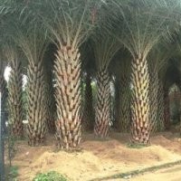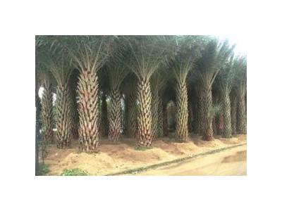 別名:銀海棗 科名:棕櫚科刺葵屬 學名:Phoenix sylvestris 原產地:印度、緬甸 科屬:棕櫚科熱帶亞熱帶植物 主要分布:福建、臺灣,湖南也能夠生長。 移栽栽培: 一、砌池填土 中東海棗根系本身都帶有很大的土球,假植時只須挖一個淺坑或不挖坑,根系周圍用磚砌一個圓形的樹池,填入泥土和黃沙(主要成分為黃沙),覆蓋住整個土球。這樣既能保證根系正常生長,售出時移走也很方便。