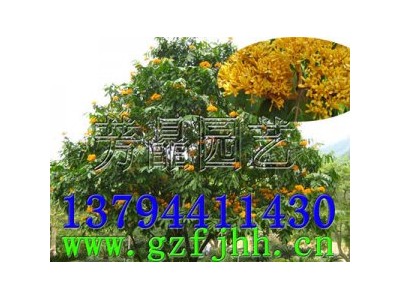 常綠喬木,高約l0m,偶數羽狀復 葉,有小葉5-6對,革質,長橢圓形或 長倒卵形。傘房狀圓錐花序腋生,較大。花橙黃色至深紅色。莢果棕褐色,扁平。花期4-5月。果期7-10月。
