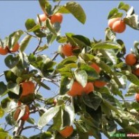 柿樹落葉喬木,樹葉橢圓形,葉背有絨毛,黃色或白色花朵。柿子樹高達15米,樹冠龐大,枝葉豐茂,黑色樹皮,木材可制作家具等器具。生柿子的功效更是了得,是降血壓良藥,對高血壓、痔瘡出血、便秘都強效。日本人把柿葉制成茶葉,含有大量人體所需的維生素C。
