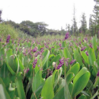 再力花,多年水生植物,新引進的觀賞花卉植物,原產(chǎn)自美國和墨西哥,引進后在各地表現(xiàn)良好,海口、南寧、中山、廣東、福建等地均有栽植。再力花株型高大優(yōu)美,淺藍色肥大的葉片,邊緣紫色,葉子長50cm,寬25cm。復總狀花絮,小型花朵有紫色和白色的,全株上帶有白色粉末,高大2米以上,是近年來引進的具有很高觀賞價值的水生花卉。