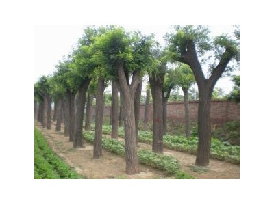 國槐_國槐價格_國槐種植 主要播種繁殖,也可扦插。春播,因種皮有細胞緊密結合的柵欄層,透水性差,播種前,用始溫85-90度的水浸種24小時,余硬粒再處理1-2次。種子吸水膨脹可播種。條播行距20-25厘米,覆土厚度1.5-2厘米,每畝播種量8-10公斤,7-10天幼苗出土,幼苗期合理密植,防止樹干彎曲,一般每米長留苗6-8株,一年生苗高達1米以上。也可早春集中營養缽育苗后移植定苗。國槐萌芽力較強,若培養大苗形成良好的干形,可在第二年早春截干,加大株行距,當年苗高3-4米,樹干通直,粗壯光滑。