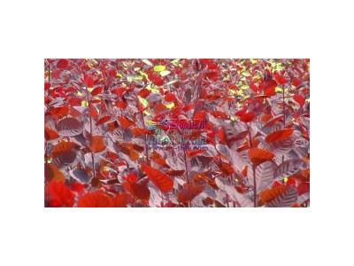 紫葉紅櫨屬落葉灌木或小喬木,株高3-5 米,樹冠卵圓形至半圓形。葉片呈倒卵形,長3-8厘米,單葉互生,在春、夏、秋三季均紅色。初春時樹體全部葉片為鮮紅色,春夏之交,葉色紅而亮麗。盛夏時節,開始開花,圓錐花序密生,有暗紫色毛,著生于枝條頂端,花序絮狀鮮紅,遠看如火似霧,又稱煙樹。紫葉紅櫨下部葉片開始漸漸轉為綠色,但頂梢新生葉始終為深紅色,而入秋后,整株葉色又逐漸轉變深紅色,秋霜過后,葉色更加紅艷美麗。樹皮褐色或紅褐色,新枝紫色或紫褐色,幼枝紫紅色。