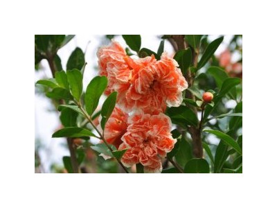 信息描述: 瑪瑙石榴是從栽培的牡丹石榴中發(fā)現(xiàn)一棵開橘紅色花的變異植株?,旇窕ㄐ痛T大豐滿,重瓣花,花色似瑪瑙紅?;ㄆ?月中下旬至10月上中旬,花如顆顆瑪瑙鑲滿枝頭,極具綠化美化效果,堪稱石榴中的精品,綠化美化的極品。