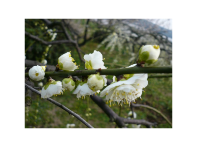 綠色梅花別稱綠萼梅、白梅花、綠梅花,落葉喬木,小枝多綠色,枝端尖刺狀,無毛,葉互生,寬卵形至卵形,長4-10cm,寬3-5.5cm,先端長漸尖,基部寬楔形或近圓形,邊緣有細鋸齒,下面色較淺,嫩時兩面有毛,老時僅下面脈上有柔毛;葉柄有毛,托葉早落。花1-2朵簇生,先葉開放,有香氣,萼片5,常帶紫紅色,花后常不反折;花瓣5,白色、紅色或淡紅色,有的重瓣;雄蕊多數,心皮1,密被短柔毛。核果近球形,兩邊扁,有縱溝,直徑2-3cm,熟時黃色,有短柔毛。花期3月,果期5-6月。