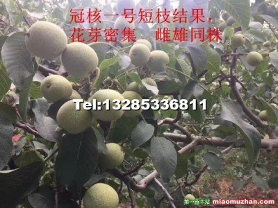 “冠核一號”核桃介紹冠核一號是淄博冠核農業開發有限公司2004年從濟南高新苗木研究所引進“8518”核桃苗定植后。2006年發現單株芽變,2011年選育成功的一個核桃品種。冠核一號是經過多次實驗、選育成功,果子是目前...的,產量也是首屈一指,所以命名為“冠核一號”冠核一號核桃中的王中王。2014年1月中旬,被評為“中國著名品牌”、“中國十大優質種苗”。 “冠核一號”核桃的特點 1、“冠核一號”核桃的早實性很強。該品種原種苗當年種植,當年就有部分開花現象;定植后當年開花,部分苗子坐果,部分苗子單株結果可達20多個。嫁接苗當年嫁接即可有開花現象;定植苗當年開花,部分可以坐果。定植后原種苗、嫁接苗第二年80%以上可坐果。早果性明顯比“8518”核桃早。 2、“冠核一號”核桃的豐產性很強。該品種3年就可有產量,中等管理水平,畝產干果50千克(公斤)以上。5-6年樹即可進入豐產,畝產400-500千克(公斤),比“8518”產量更穩定,更有把握,產量更勝一籌。 3、“冠核一號”堅果技術指標優越。該品種果實近圓形(稍橢圓)殼厚0.7-0.8毫米(比“8518”殼薄),手捏即開,取仁易。出仁率65%以上(國內大部分優良品種出仁率都在50%左右,達到60%的極少),仁色淺黃色,口味香,干果無澀味,品質上等。 4、耐儲藏。常溫下,核桃堅果可存放一年品質不變
