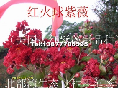 紅火球紫薇(美國大紅紫薇新品種) 千屈菜科紫薇屬落葉喬木,美國大紅紫薇新品種,是難得的大紅色紫薇佳品:花鮮紅如國旗,儼如一團火球,甚是耀眼。花在晴熱天為猩紅色,多云涼爽天氣則為亮紅色,有時還帶有白色的邊,美麗多彩。新葉深紅色,老葉綠色。6月初始花,花期可達5個月,花后及時修剪,可多次開花。耐旱,可耐-23℃的低溫,抗病性較強。是制作盆景、樁景的良好材料,可孤植或叢植。是極其少見的大紅紫薇品種,品種資源極其稀少,觀賞價值極高,市場前景廣闊,是常規紅花紫薇是無法比擬的。