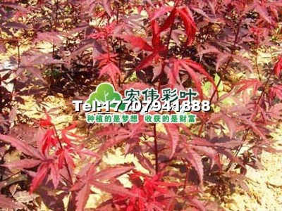 以歐洲紅楓為父本,以日本紅楓為母本,通過多年雜交選育而成。是一個非常受歡迎的紅楓新品種。三季紅葉,倍受推崇。早春出葉早,提前10天左右;分枝多,生長快;葉色鮮紅,持續時間長。因為其樹型的小巧、精致的類似蕨類植物的葉片以及秋天艷麗的色彩(金黃色到較深的紅色)而聞名。歐羅紅楓適合于寒冷氣侯能耐-25℃的低溫。高4一8米,冠幅4一5米。掌狀5一7深裂,卵狀披針形,此品種在春、夏、秋三季葉片均為紅色,尤其春秋;春季葉色為鮮紅色,仲夏葉片變為棕紅色。主要分枝著生部位較低,有很多密集錯綜復雜的小枝。冬季葉片落盡后,它奇特極富觀賞性的枝干仍然為冬季園林增添一景。 供苗:試種100株26元每株 種植1000株以上23元每株 最少20株起郵28元每株