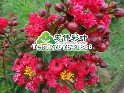 美國大紅紫薇新品種,新葉深紅色,老葉綠色。7月初始花,花期可達4月,花鮮紅色,儼如一團火球,甚是耀眼。花在晴熱天為猩紅色,多云涼爽天氣則為亮紅色,有時還帶有白色的邊,美麗多彩,是極其少見的大紅紫薇品種。花后及時修剪,可多次開花。耐旱,可耐-23℃的低溫,抗病性較強。是制作盆景、樁景的良好材料,可孤植或叢植。供苗: 30-50厘米高苗試種1000株3元每株,萬株以上2.5元每株,...100株起郵4元每株。 50-80厘米高苗試種200株4.5元,千株以上4元每株,...100株起郵5元每株。