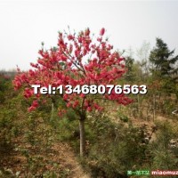 高桿短枝碧桃,5年苗,樹形為球形,圓帽,滿樹開花,花期15天,顏色國旗紅,病蟲害少,易管理,適合道路公園別墅移植,