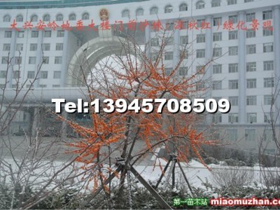 綠化實例;冬季掛果效果;沙棘(深秋紅)原產地芬蘭,樹高可達4-5米,掛果紅色、經冬不落;無需病蟲害防治,耐寒耐瘠薄。集生態、經濟、景觀價值于一身,包栽保活。