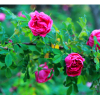紫枝玫瑰具枝紫葉綠花紅等觀賞特點,在園林綠化上極具發展潛力。沿道路兩旁成行栽植,待夏秋花繁葉茂時,觀花聞香自醉在其中;冬春落葉時,又可欣賞到其枝條紅紅火火的壯觀景致。