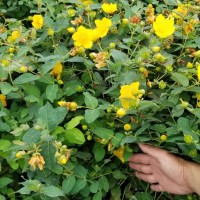 【金絲桃園林應用】金絲桃花葉秀麗,花冠如桃花,雄蕊金黃色,細長如金絲絢麗可愛。葉子很美麗,長江以南冬夏長青,是南方庭院中常見的觀賞花木。植于庭院假山旁及路旁,或點綴草坪。華北多盆栽觀賞,也可作切花材料。